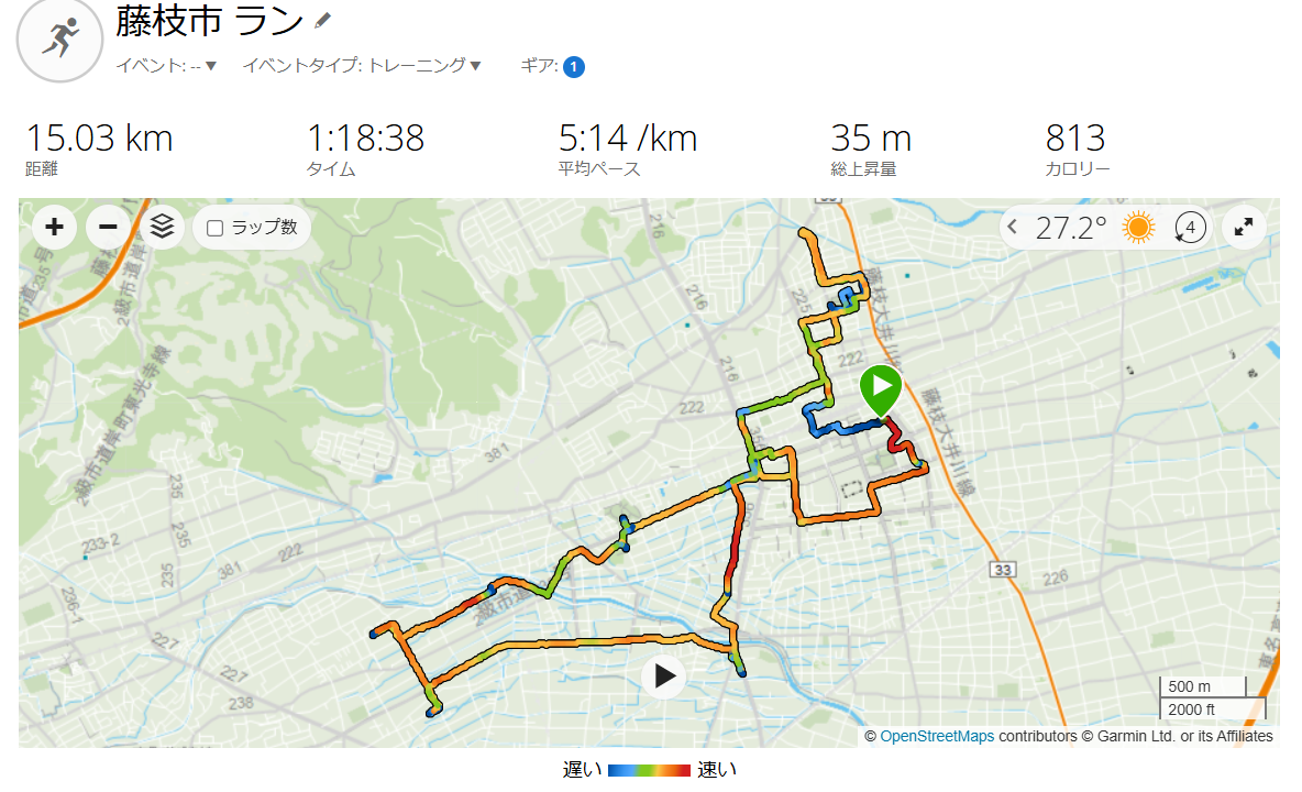 早朝3:18スタート。靴は、「workman ハイバウンス オーバードライブ⑥」。自宅から青木中央公園、岩城神社、島田市東町を経由して自宅に戻り、15KM完走。右膝は完治していないが、走りへの影響はほとんど感じなくなった。