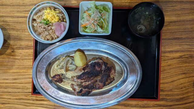 先日の夕食は、藤枝市本町にある「助宗食堂」へ。オーダーは、「ミラカン」1050円、ミートボール250円、「トマトとレタスのサラダ」520円。とろみのあるスパイシーなトマトソースがもっちりとした太麺に絡んでなかなか旨い。「ミラカン」は、「ミラネーズ」(ウィンナー、ベーコン、マッシュルーム)と「カントリー」(野菜、小エビ、マッシュルーム)のミックスでこのお店の定番らしい。