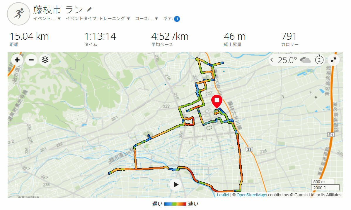 早朝4:47スタート。靴は、「workman ハイバウンス オーバードライブ⑨」。自宅から田沼街道道跡、駅南公園、静岡県武道館、青木中央公園、岩城神社、青南町、高岡、泉町を経由して自宅に戻り15KM完走。左大臀筋の張りは、殆ど気にならない程度まで回復してきたので、走りに影響は無かった。