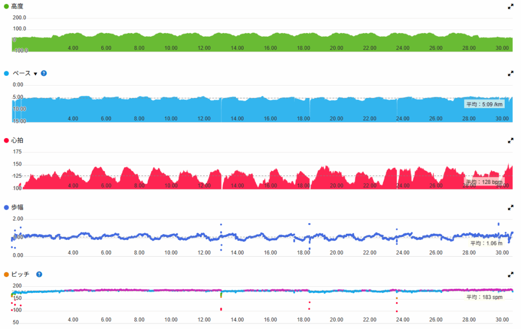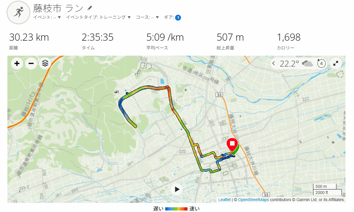 今日は30KM起伏走。5月以来、久し振りにポイント練習として走る。給水の600MLペットボトルとアミノ酸をリュックサックに入れ、駿河台コースを7周する予定。左足ハムストリングスの張りが気になるので、ペースは気にせずに走りたい。