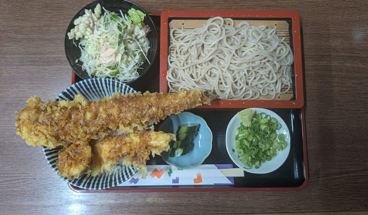 先日の夕食は、藤枝市高柳にある「岩久 高柳店」へ。オーダーは、「ミニあなご天丼セット」1300円。セットは、ざるそば、あなご天丼、サラダ、漬物。あなごの天ぷらはボリュームがあり、昔ながらの味である。岩久は藤枝市内に他にお店があったが、閉店してしまったので、こちらのお店は続けて欲しい。
