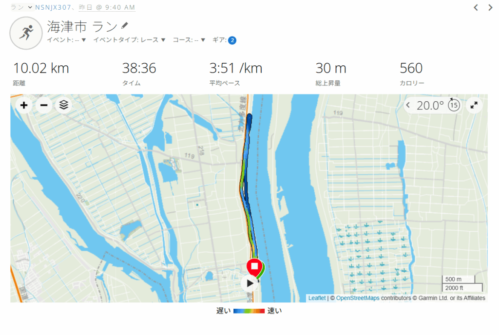 昨日は岐阜県海津市で開催された「ねんりんピック岐阜2025」。距離は10KMであるが、翌週の「しまだ大井川マラソン」に向けて、速いペースで走り刺激を入れておきたい。レース前に小雨が降ったが、暑くも寒くもなく風も穏やかで、ランニング日和である。目標タイムは、38分台。靴は「Nike アルファフライ 3」。