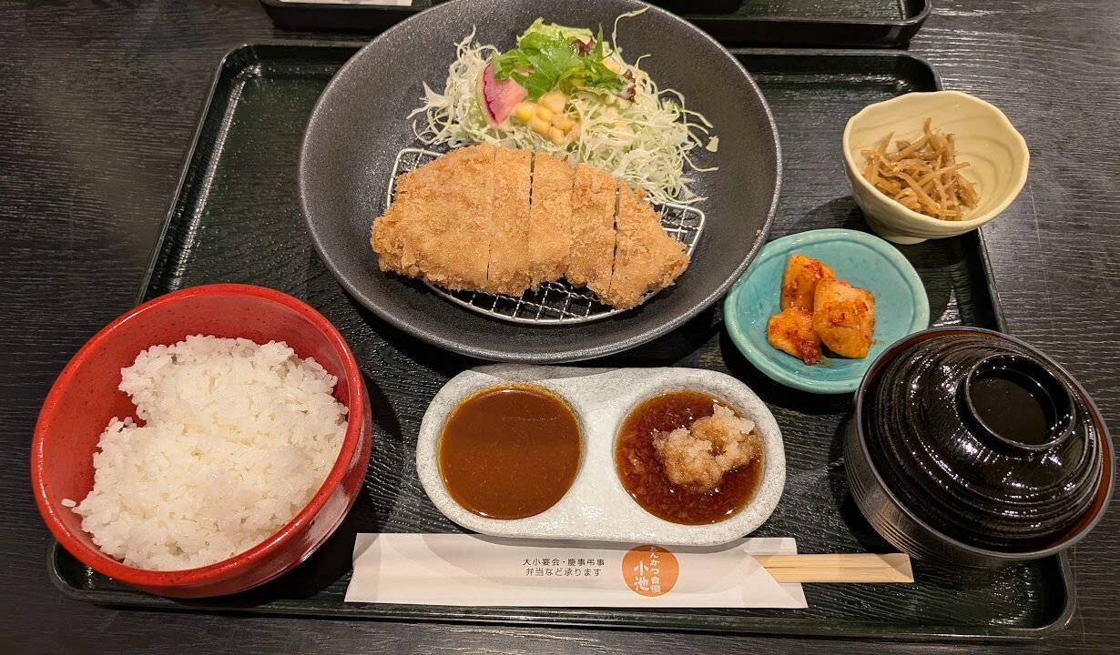「ねんりんピック岐阜2025」前日の夕食は、岐阜県海津市にある「とんかつ 小池」へ。オーダーは、「ロースかつ定食」1750円。とんかつは美濃ヘルシーポークを使用しており、柔らかで豚肉に旨味がある。ソースは2種類選べてドビソースとおろしポン酢をチョイス。ドビソースは他店には無い秘伝のソースで、とんかつとの相性が良かった。