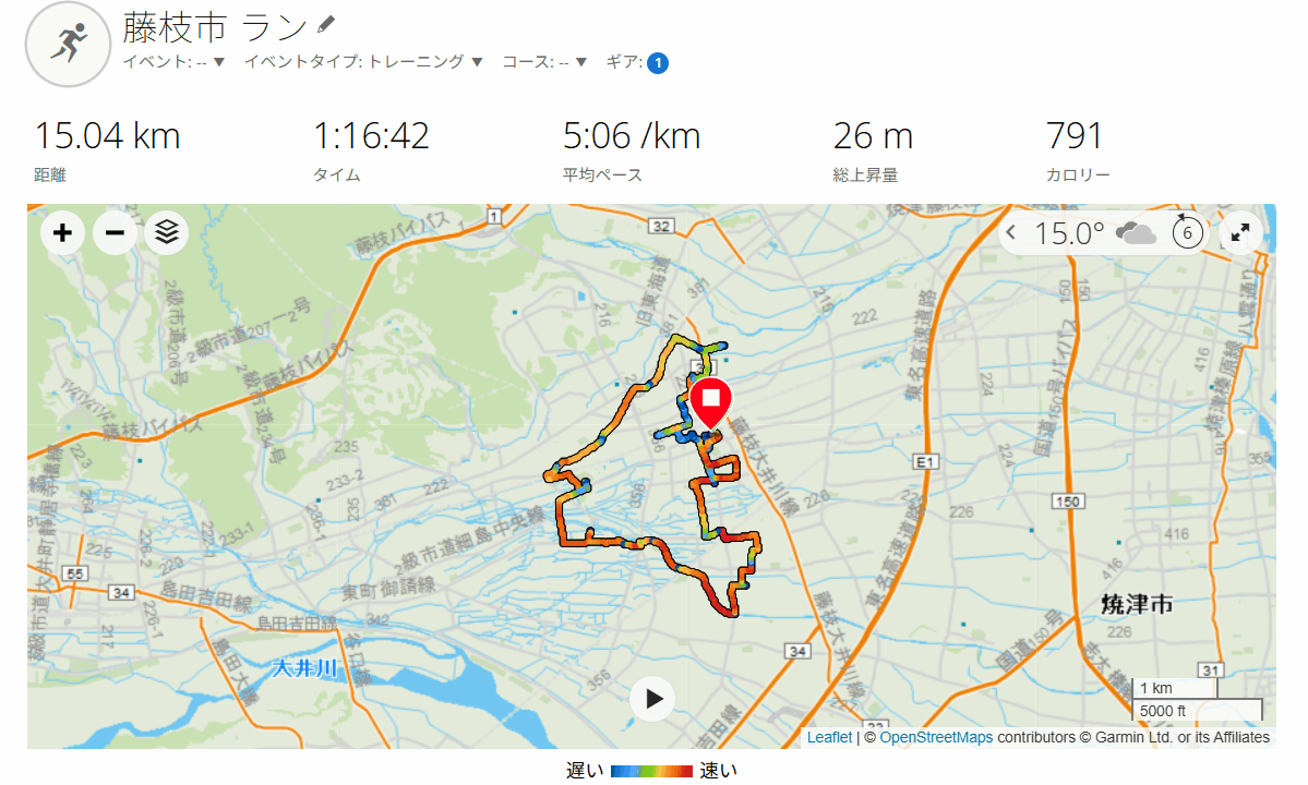 早朝4:06スタート。靴は、「workman ハイバウンス オーバードライブ⑩」。自宅から駅南公園、田沼南公園、藤枝駅、駅西公園、青木中央公園、東町、南新屋、下青島、岩城神社、青南町、高岡、泉町を経由して自宅に戻り15KM完走。左足に不安があるので、徐々にペースを上げていつものペースまで上げることが出来た。日曜日は普通に走れると信じたい。