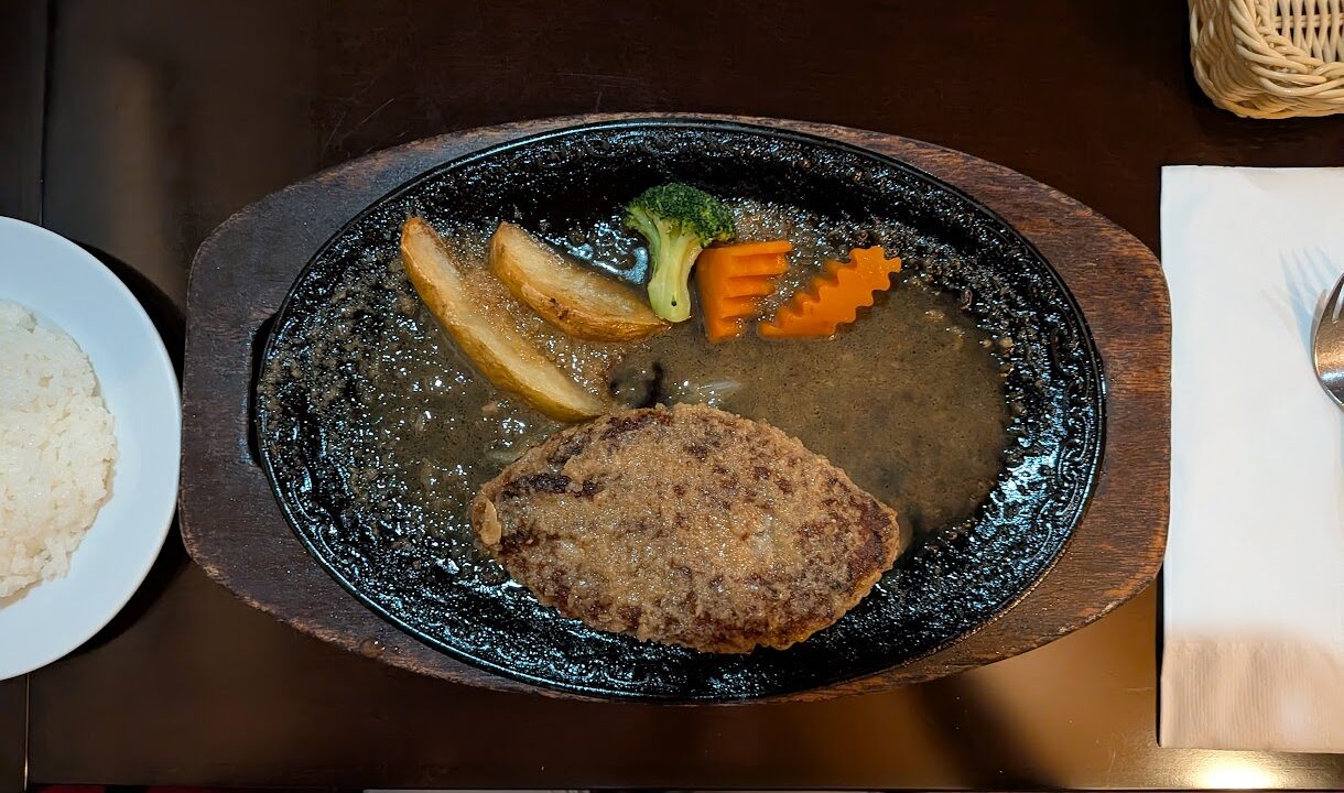 先日の「防府読売マラソン」前日のランチは、山口県防府市にある「紅屋」へ。オーダーは「紅屋ハンバーグ」1080円と「ライスセット」500円。「ライスセット」は、ライスにサラダ、スープ付き。熱々の鉄板に盛られた小判型のハンバーグは、大き目であるが柔らかく、レモン風味のソースが良く合っていて美味しい。地元民に愛されている理由が分かった。