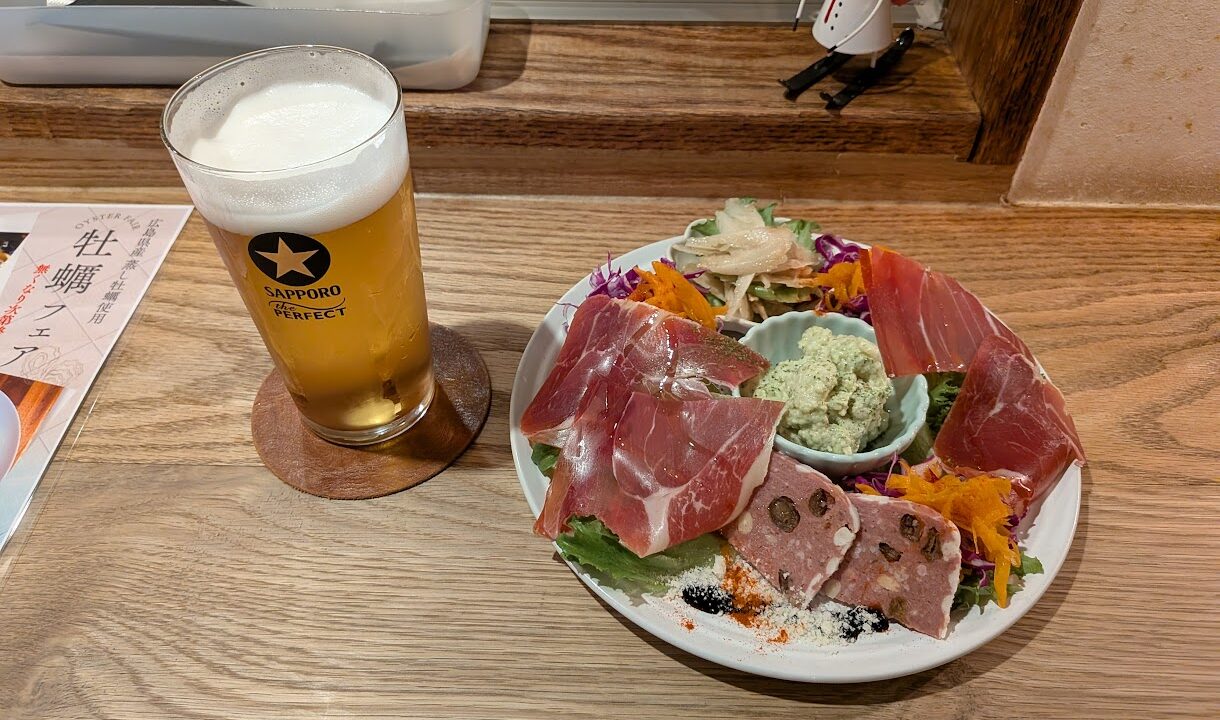 先日の「防府読売マラソン」後の夕食は、宿泊したホテルの近くにある「イタリアン食堂 良’s」へ。オーダーは「生ビール」650円、「シーザーサラダ」510円、「前菜の盛り合わせ」1045円、「厚切りベーコンのカルボナーラ」1290円。目標タイムを上回る2時間51分台で走ることが出来たので、美味しいビールを飲めた。しかも食べた料理はどれも美味しかったので、また訪れたいお店である。