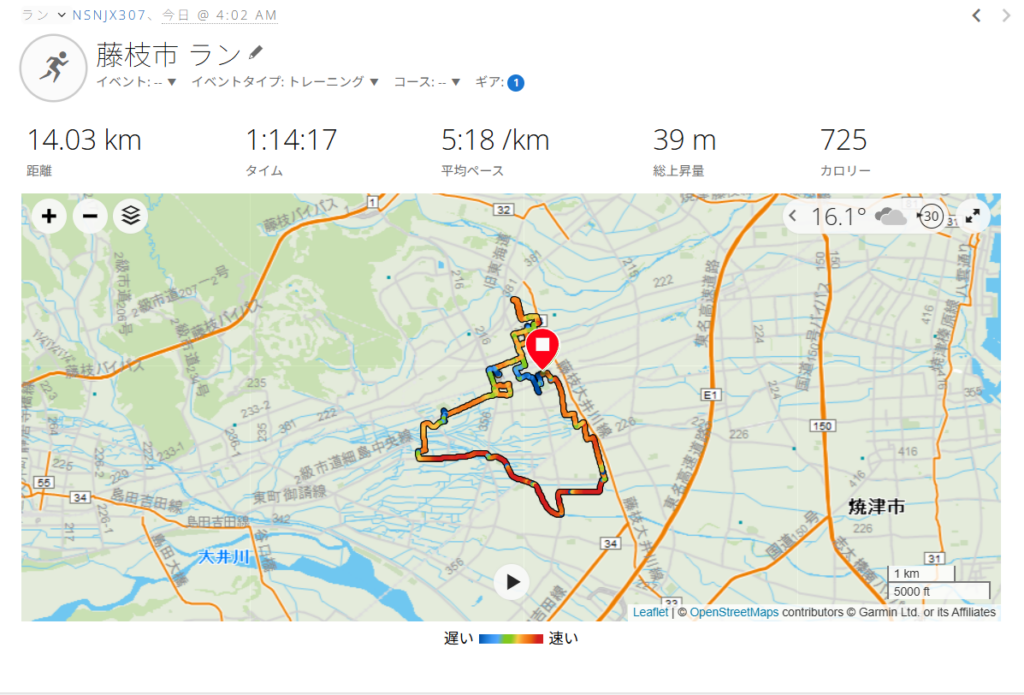 早朝4:02スタート。靴は、「adidas supernova rise2」。自宅から駅南公園、青木中央公園、岩城神社、青南町、高岡、泉町、高洲を経由して自宅に戻り、予定よりも少し短めの14KM完走。昨日、30KM走っており疲れ気味なので、早めに切り上げた。