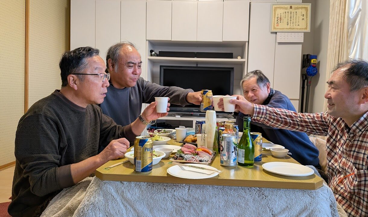 昨夜は、いつものメンバーと我が家で忘年会。残念ながら1名欠席だったが、約7時間に及ぶ長時間の宴会だった。時の流れは速く全員が60歳台半ばとなったが、これからも健康で飲めたらと願う。