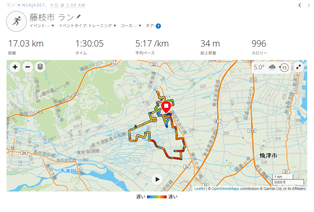 平均速度:5:17/KM