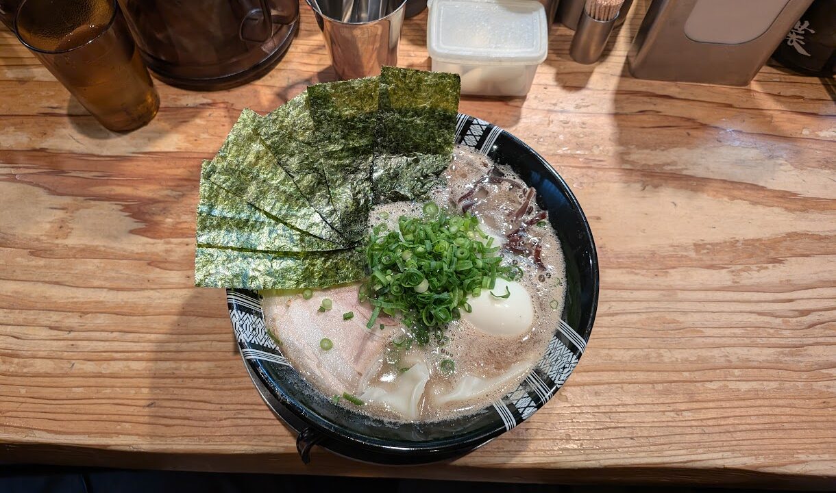 「別府大分毎日マラソン」を走った翌日は、福岡市に移動しランチのため博多区にある「博多一双 祗園店」へ。オーダーは、「特製ラーメン」1410円。泡立った白濁したスープはコクがあり、バリカタのストレート細麺に絡んで本場の豚骨ラーメンである。トッピングは特製なので、チャーシュー、海苔、半熟卵、ワンタン、きくらげ、ネギとバラエティ豊か。卓上の紅しょうがや辛子高菜で味変も楽しめたので、お腹にゆとりがあれば替え玉したかった。