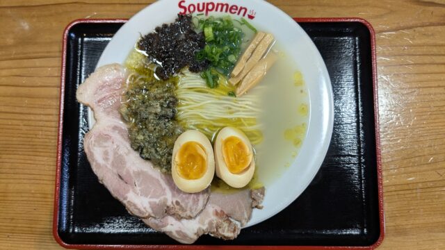 最近の出来事 Soupmen「牡蠣塩らぁ麺」 2025年9月19日 nsnjx307 アラカンランナーのグランドスラムチャレンジ日記 先日のランチは、焼津駅前にある「Soupmen」へ。オーダーは、「牡蠣塩らぁ麺」1300円。静岡県産「金豚王」チャーシューと味玉入りである。スープは牡蠣のうま味が溢れ、硬めのスト …